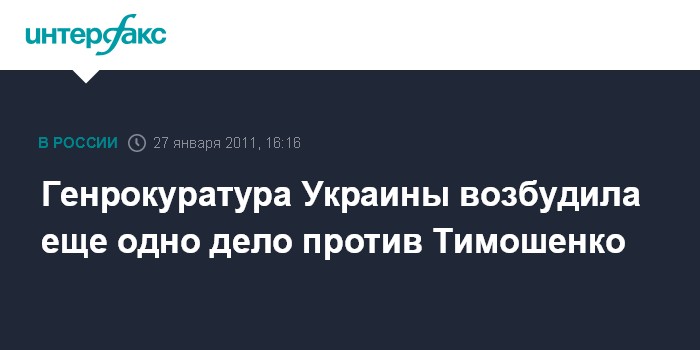 Киев. 27 января. INTERFAX.RU - Генеральная прокуратура Украины в четверг возбудила еще одно уголовное дело в отношении экс-премьера Юлии Тимошенко.