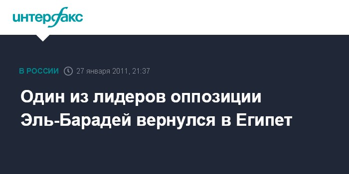 Эль-Барадей вернулся в Египет, чтобы уже в пятницу принять участие в акциях протеста против президента Хосни Мубарака. Кроме того, он разместил несколько посланий в микроблоге Twitter в поддержку участников акций протеста.