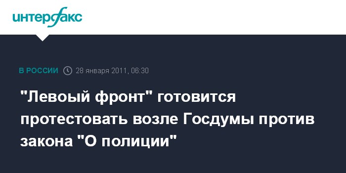 Москва. 28 января. INTERFAX.RU- Активисты оппозиционного движения "Левый Фронт" проведут в пятницу перед зданием Госдумы серию одиночных пикетов против принятия закона "О полиции".