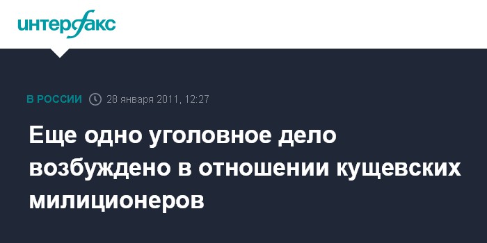 Москва. 28 января. INTERFAX.Ru - Следователи возбудили дело против начальника отделения по делам несовершеннолетних ОВД по Кущевскому району Краснодарского края.