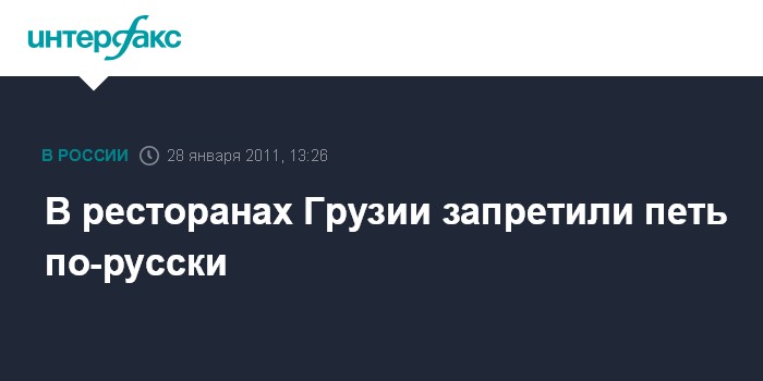 Тбилиси. 28 января. INTERFAX.RU - В ресторанах Грузии власти негласно запретили музыкантам исполнять песни на русском языке, сообщает независимый грузинский телеканал Maestro.