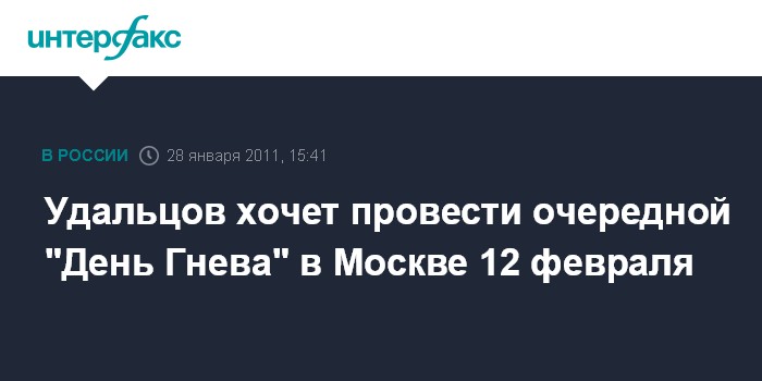 Москва. 28 января. INTERFAX.RU - Организаторы акции оппозиции "День гнева" передали уведомление столичным властям о проведении 12 февраля митинга на Театральной площади и шествия к зданию администрации президента.