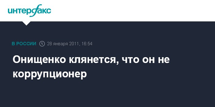Москва. 28 января. INTERFAX.RU - Глава Роспотребнадзора Геннадий Онищенко клянется, что он не коррупционер.