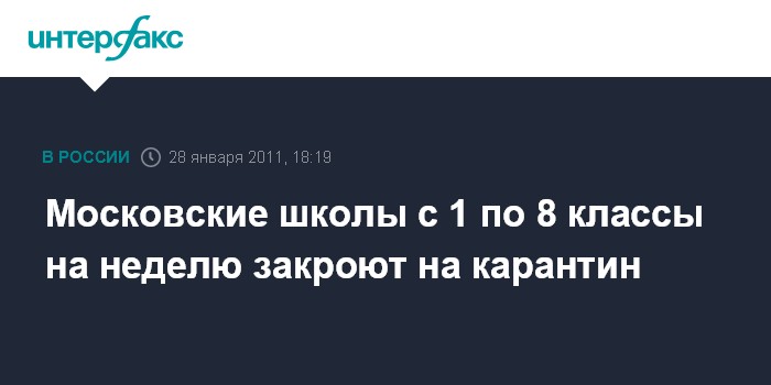 Москва. 28 января. INTERFAX.RU - Департамент образования столицы издал приказ о приостановлении занятий в государственных образовательных учреждениях с 31 января на пять календарных дней для учащихся с 1-го по 8-й класс, сообщила "Интерфаксу" пресс-секретарь департамента Александр Гаврилов в пятницу.