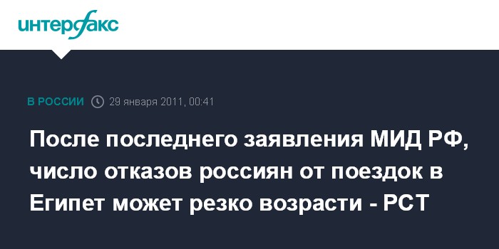 После последнего заявления МИД РФ, число отказов россиян от поездок в Египет может резко возрасти - РСТ