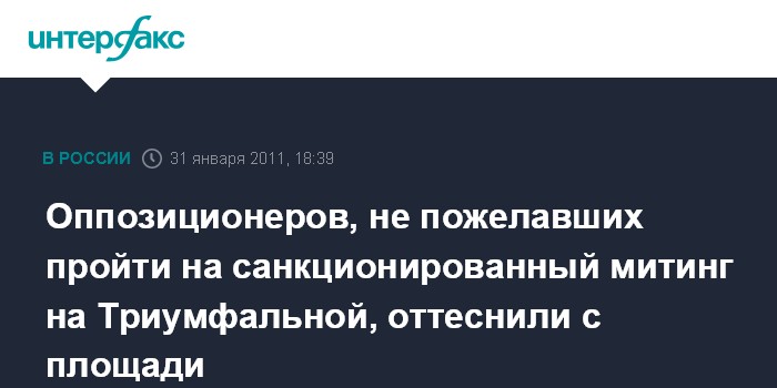 Москва. 31 января. INTERFAX.RU - На акции оппозиции в Москве около 30 человек отказались проходить на санкционированный митинг на Триумфальную площадь и начали скандировать: "Свобода!".