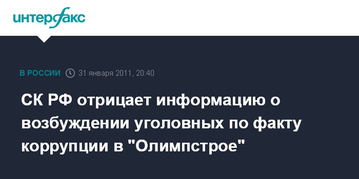 СК РФ отрицает информацию о возбуждении уголовных по факту коррупции в "Олимпстрое"