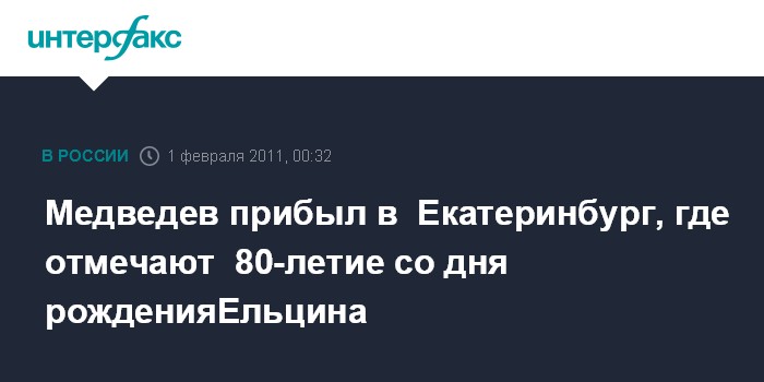 Медведев прибыл в Екатеринбург, где отмечают 80-летие со дня рожденияЕльцина