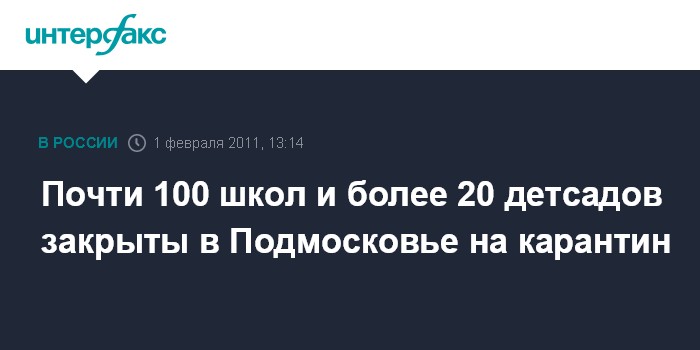 Красногорск. 1 февраля. INTERFAX.RU - Ученики сотни школ и почти тысячи классов в средних учебных заведениях Московской области отправлены на внеочередные каникулы из-за карантинных мероприятий по ОРВИ и гриппу.
