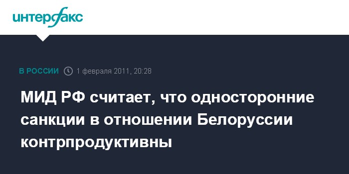 МИД РФ считает, что односторонние санкции в отношении Белоруссии контрпродуктивны
