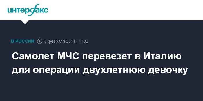 Самолет МЧС перевезет в Италию для операции двухлетнюю девочку