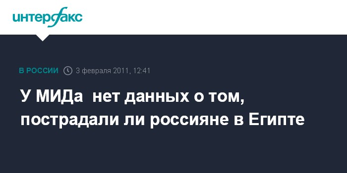 Москва. 3 февраля. INTERFAX.RU - В МИД России пока не располагают информацией о россиянах, которые могли пострадать в результате столкновений сторонников и противников президента Египта Хосни Мубарака в Каире.