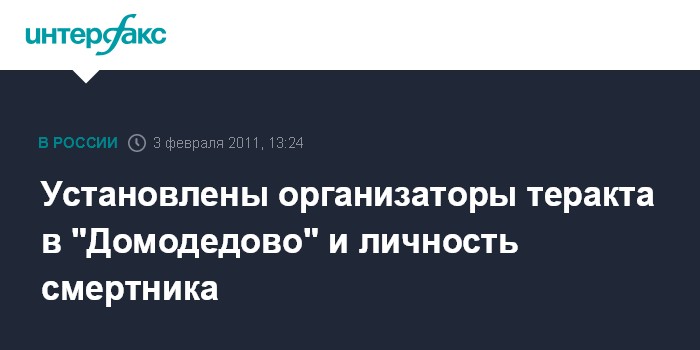 Москва. 3 февраля. INTERFAX.RU - ФСБ установила личность смертника, совершившего теракт в аэропорту "Домодедово", доложил президенту РФ Дмитрию Медведеву глава ФСБ Александр Бортников.