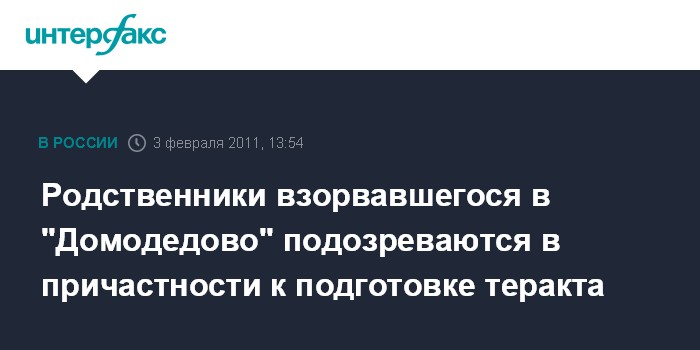 Родственники взорвавшегося в "Домодедово" подозреваются в причастности к подготовке теракта