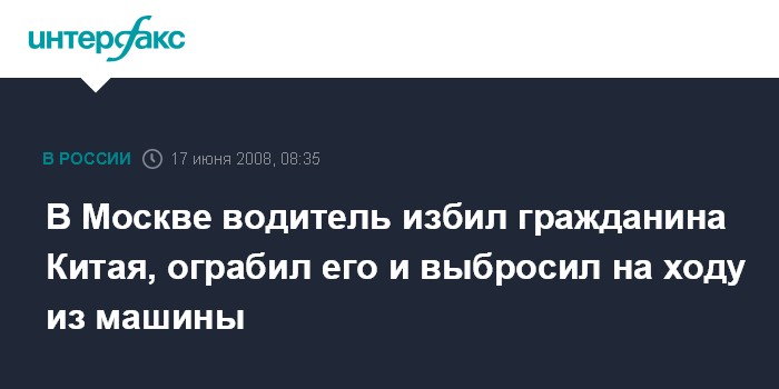В Москве водитель избил гражданина Китая, ограбил его и выбросил на ходу из машины