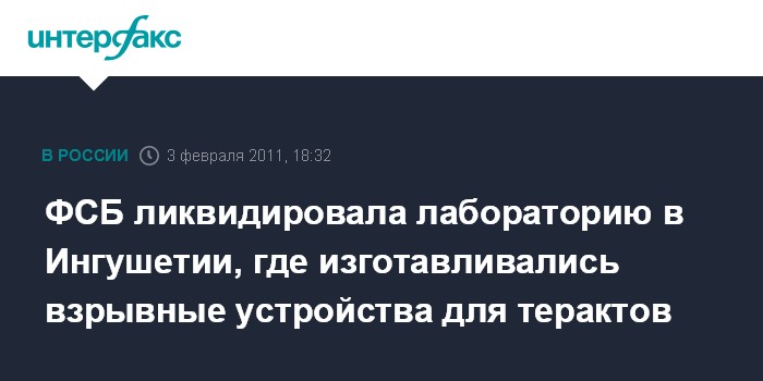 ФСБ ликвидировала лабораторию в Ингушетии, где изготавливались взрывные устройства для терактов