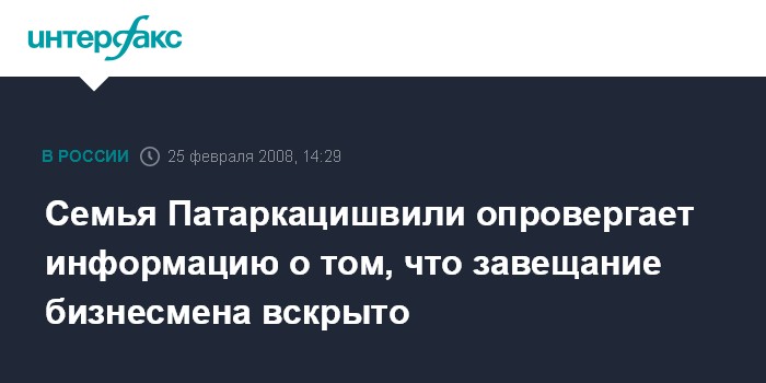 Тбилиси. 25 февраля. INTERFAX.RU - Информация некоторых СМИ о том, что уже якобы известно содержание завещания бизнесмена Бадри Патаркацишвили, не соответствует действительности, заявляют родственники бизнесмена.
