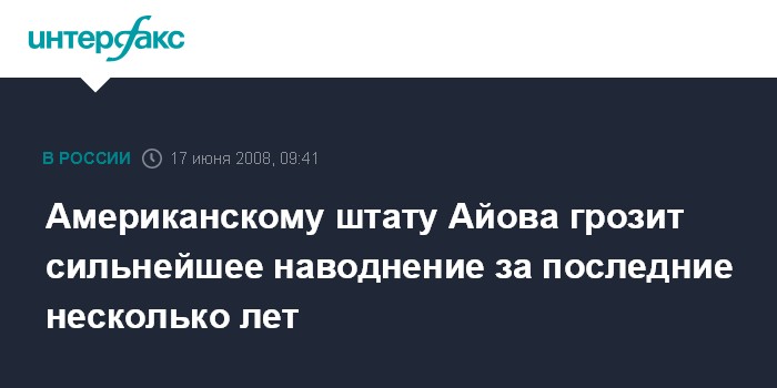 "Вероятно мы станем очевидцами крупного и серьезного наводнения на юго-востоке штата. Мы предпринимаем меры предосторожности и проводим, где необходимо, эвакуацию населения",- заявил губернатор Айовы Чет Калвер.