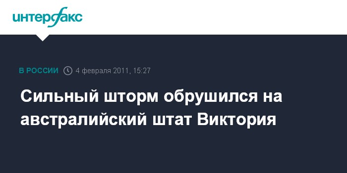 Сидней. 4 февраля. INTERFAX.RU - Сильный шторм вызвал наводнение в австралийском штате Виктория, сообщает в пятницу австралийская телерадиокомпания ABC.