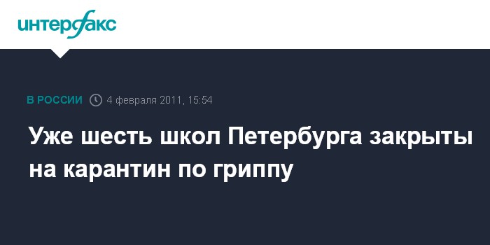 Санкт-Петербург. 4 февраля. INTERFAX.RU - Шесть средних школ Петербурга полностью закрыты на карантин по гриппу и другим ОРВИ, еще 109 школ частично продолжают занятия, сообщила "Интерфаксу" пресс-секретарь городского комитета по образованию Лариса Кузьмина в пятницу.