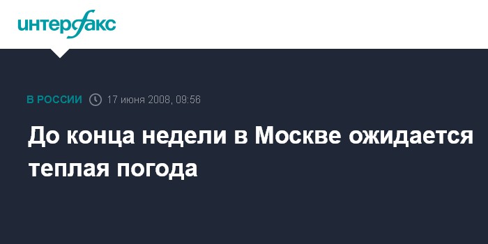 Москва. 17 июня. INTERFAX.RU - Теплая погода продержится в столице как минимум до конца этой недели, сообщили "Интерфаксу" в Гидрометеобюро Москвы и Московской области.