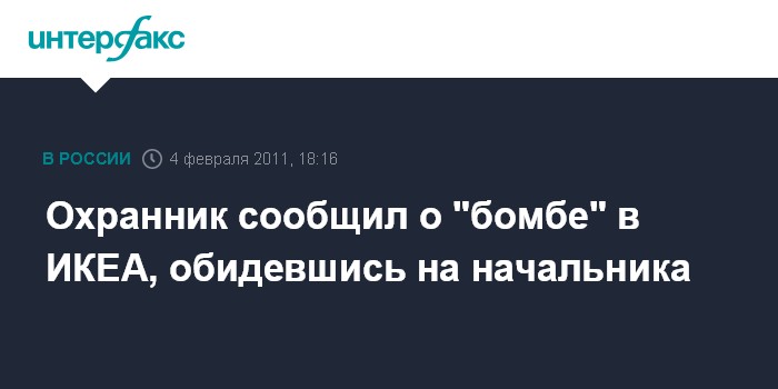 Охранник сообщил о "бомбе" в ИКЕА, обидевшись на начальника