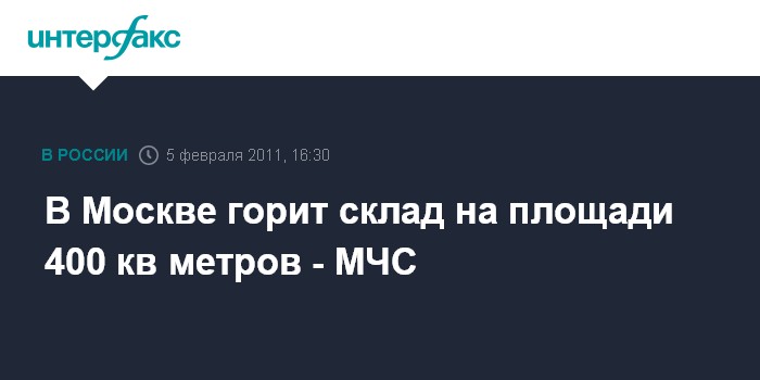 Москва. 5 февраля. INTERFAX.RU - На севере Москвы произошел сильный пожар на складе, сообщил "Интерфаксу" в субботу начальник пресс-службы ГУ МЧС по Москве Евгений Бобылев. Он отметил, что возгорание произошло по адресу Дмитровское шоссе, дом 182 "б". "Сообщение о пожаре на складе, где хранится скотч и легковоспламеняющиеся жидкости, поступило в 15:30. Площадь пожара составляет 400 кв. метров", - сказал Е.Бобылев.