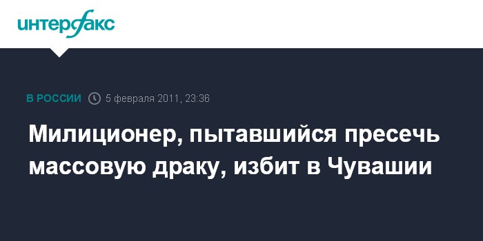 Милиционер, пытавшийся пресечь массовую драку, избит в Чувашии