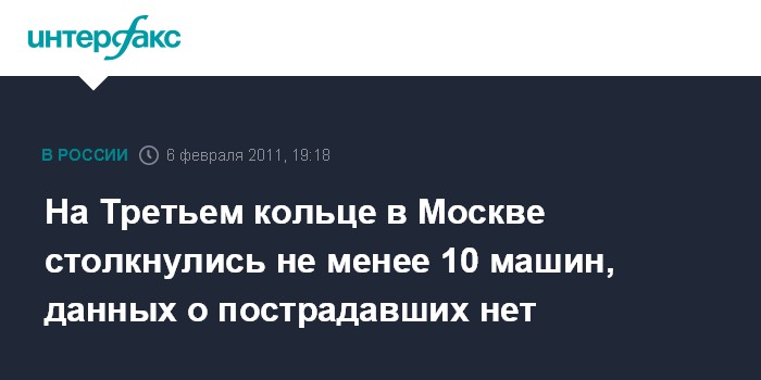 Москва. 6 февраля. ИНТЕРФАКС - ДТП с участием, по меньшей мере, 10 машин произошло в Москве на Третьем транспортном кольце в воскресенье вечером, передает корреспондент "Интерфакса".