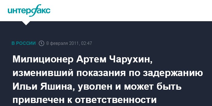 Милиционер Артем Чарухин, изменивший показания по задержанию Ильи Яшина, уволен и может быть привлечен к ответственности