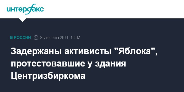 Москва. 8 февраля. INTERFAX.RU - Шесть активистов партии "Яблоко" были задержаны во вторник за проведение несанкционированной акции возле здания ЦИК РФ в центре Москвы.