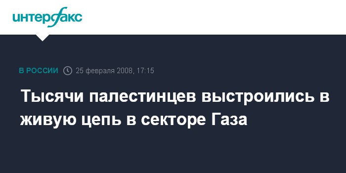Лондон. 25 февраля. INTERFAX.RU - Около 50 тыс. женщин и детей выстроились в 40-километровую живую цепь между городами Рафах и Бейт-Ханун в секторе Газа, протестуя против изральской блокады этой палестинской территории, передает в понедельник британская телерадиовещательная корпорация Би-би-си.