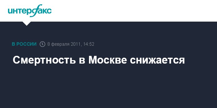 Москва. 8 февраля. INTERFAX.RU - В январе отделами ЗАГС в столице зарегистрировано 10 тыс. 113 случаев смертей, сообщили "Интерфаксу" в управлении ЗАГС Москвы во вторник.