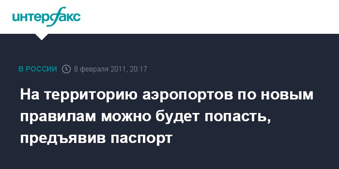 Москва. 8 февраля. INTERFAX.RU - Пропуск на территорию аэропортов будет осуществляться по предъявлению документов и при наличии оснований для прохода.