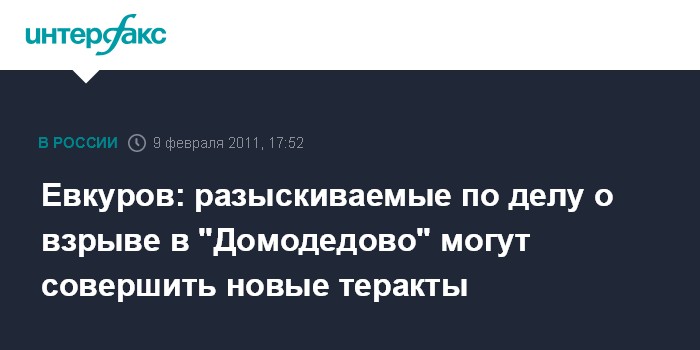 Магас. 9 февраля. INTERFAX.RU - Глава Ингушетии Юнус-Бек Евкуров допускает, что члены незаконных вооруженных формирований могут привлечь к совершению террористических актов четверых разыскиваемых по подозрению в причастности к теракту в "Домодедово".