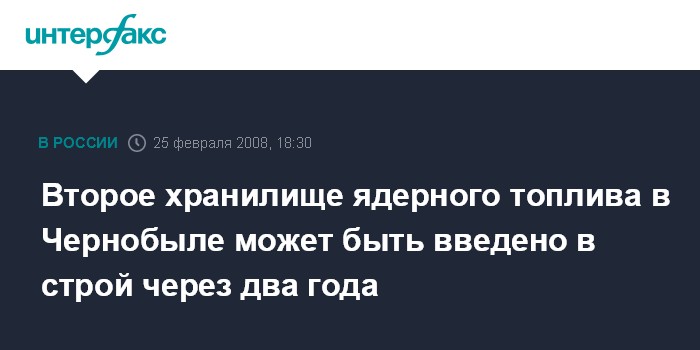 Киев. 25 февраля. INTERFAX.RU - Второе хранилище отработавшего ядерного топлива (ХОЯТ-2) на Чернобыльской атомной электростанции может быть введено в эксплуатацию в 2010 году, сообщил глава МЧС Украины Владимир Шандра.
