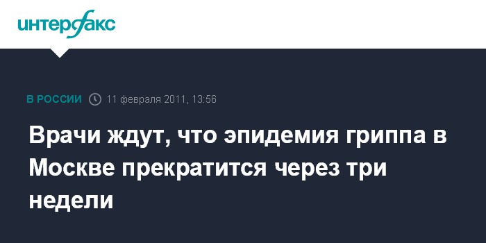 Москва. 11 февраля. INTERFAX.RU - Эпидемия гриппа и ОРВИ в столице должна закончиться в течение ближайших недель, считает главный инфекционист департамента здравоохранения столицы Николай Малышев.