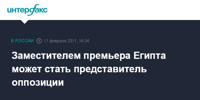 Каир. 11 февраля. INTERFAX.RU - Вице-президент Египта Омар Сулейман заявил, что премьер-министр Ахмед Шафик назначит заместителя председателя правительства из числа оппозиции, сообщает в пятницу межарабский телеканал Al-Jazeera.