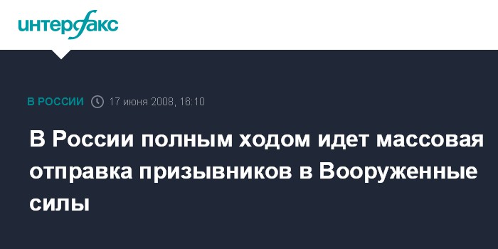 "Весенний призыв, который начался 1 апреля, осуществляется сейчас полным ходом. На сегодняшний день военкоматами России уже призвано более 100 тысяч человек, которые впервые будут служить в течение 12 месяцев. Из этого числа 60% уже направлено в войска", - сказал генерал во вторник журналистам на московском областном сборном пункте, который находится в городе Железнодорожный.