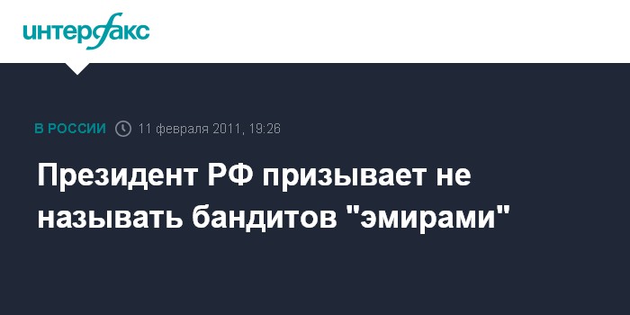 "Зачастую используются клише и определения из практики деятельности сепаратистов и экстремистов. Говорят о том, что "сегодня был задержан эмир такого-то джамаата". Какой эмир? Какой джамаат? Мы же с вами понимаем, что это не борцы за веру, а убийцы и бандиты", - сказал Медведев на заседании президиума Госсовета в Уфе.