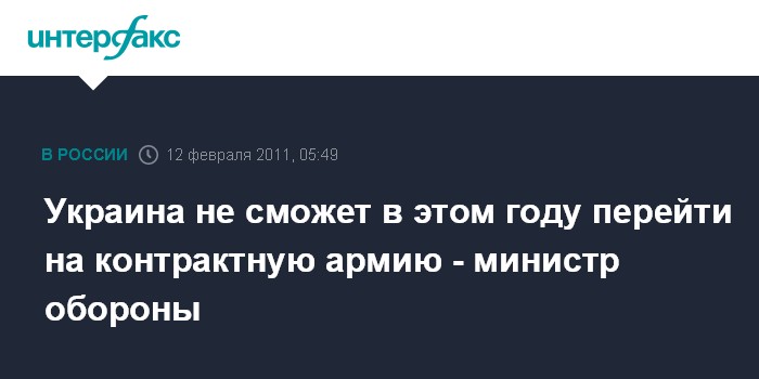 Киев. 12 февраля. ИНТЕРФАКС-УКРАИНА - Министр обороны Украины Михаил Ежель заявляет, что Украина не сможет в 2011 году полностью перейти на контрактную армию.