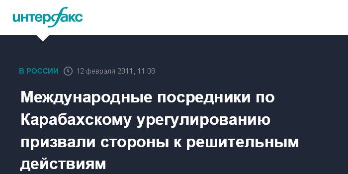 Баку. 12 февраля. INTERFAX.RU - Азербайджан и Армения должны принять решительные меры для урегулированию Нагорно-Карабахского конфликта, заявляют сопредседатели Минской группы (МГ) ОБСЕ по урегулированию Карабахской проблемы. "Настало время принятия решающих шагов для разрешения нагорно-карабахского конфликта", - отмечается в заявлении, распространенном по итогам состоявшегося 9-11 февраля визита сопредседателей МГ ОБСЕ в Азербайджан и Армению.