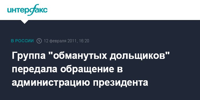 Группа "обманутых дольщиков" передала обращение в администрацию президента