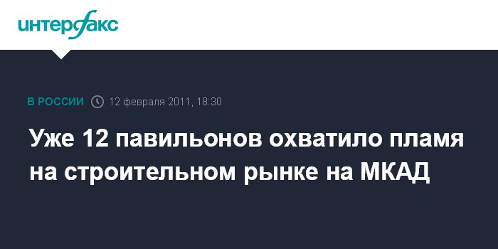 Москва. 12 февраля. INTERFAX.RU - В Подмосковье в районе 41-го км МКАД на строительном рынке "Мельница" горят 12 павильонов, сообщила "Интерфаксу" сотрудник управления информации Центрального регионального центра МЧС Людмила Мартынова. "В настоящее время горят 12 павильонов, на месте работают 26 единиц техники, 85 человек. Угрозы распространения огня не существует", - сказала она. Она добавила, что сил и средств для тушения пожара на строительном рынке достаточно.