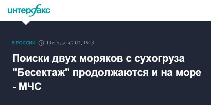 Сочи.13 февраля. INTERFAX.RU - Спасатели МЧС РФ, милиционеры и морской буксир "Руслан" продолжают искать двух пропавших моряков сухогруза "Бесектаж", который потерпел крушение близ Сочи. Руководитель муниципальной службы спасения Сочи Александр Ахмедов сказал "Интерфаксу", что поисковые работы в море продолжает буксир "Руслан". "Мы не приостанавливали поиски и работаем как на суше, так и на море", - подчеркнул А.Ахмедов.