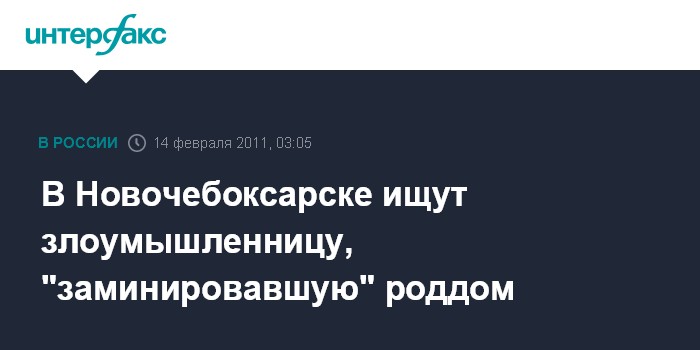 Чебоксары. 14 февраля. ИНТЕРФАКС-ПОВОЛЖЬЕ - Правоохранительные органы Чувашии ведут поиски злоумышленницы, сообщившей о заложенной бомбе в Новочебоксарском перинатальном центре.