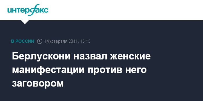 Рим. 14 февраля. INTERFAX.RU - Председатель Совета министров Италии Сильвио Берлускони назвал в понедельник мятежной мобилизацией против него выступления женщин, прошедшие по всей Италии накануне.