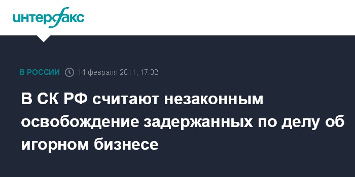 В СК РФ считают незаконным освобождение задержанных по делу об игорном бизнесе