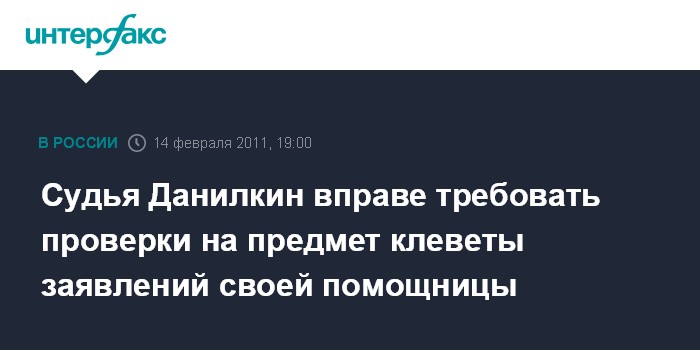 Судья Данилкин вправе требовать проверки на предмет клеветы заявлений своей помощницы