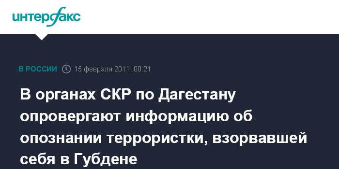 В органах СКР по Дагестану опровергают информацию об опознании террористки, взорвавшей себя в Губдене
